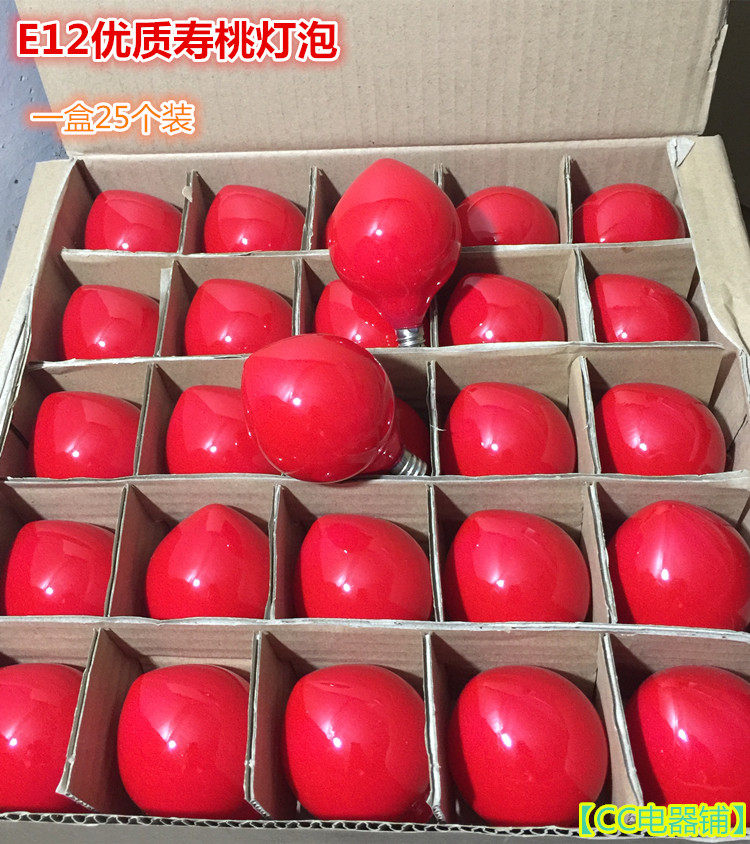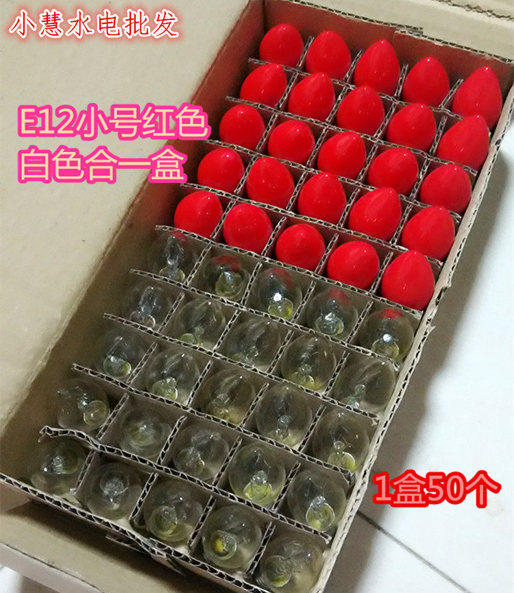 E 12 transparent bulbs 50 a box of E12 red bulbs 50 a box of E14 high quality red bulbs 50 a box of E12 longevity peach bulbs 25 E12 red and white 50