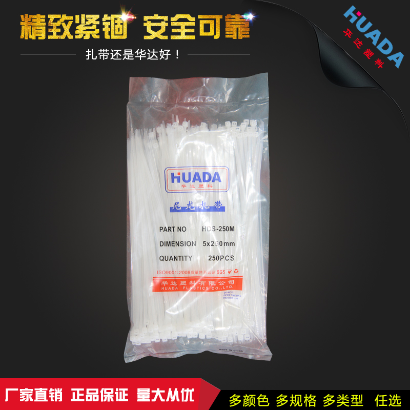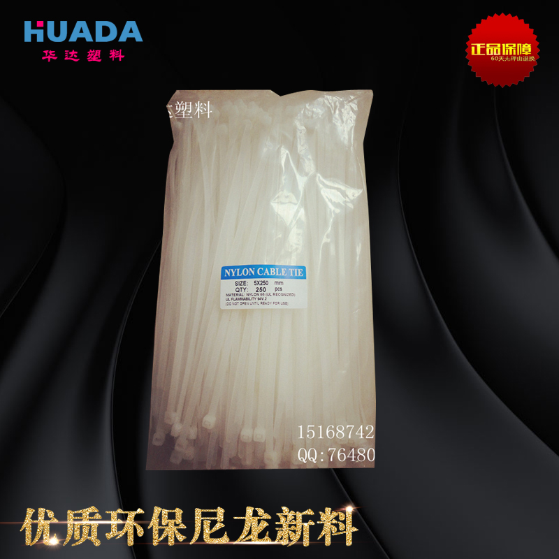 Huada plastic manufacturer sells nylon strap plastic tie bunch wire with neutral blank packing 5 * 250