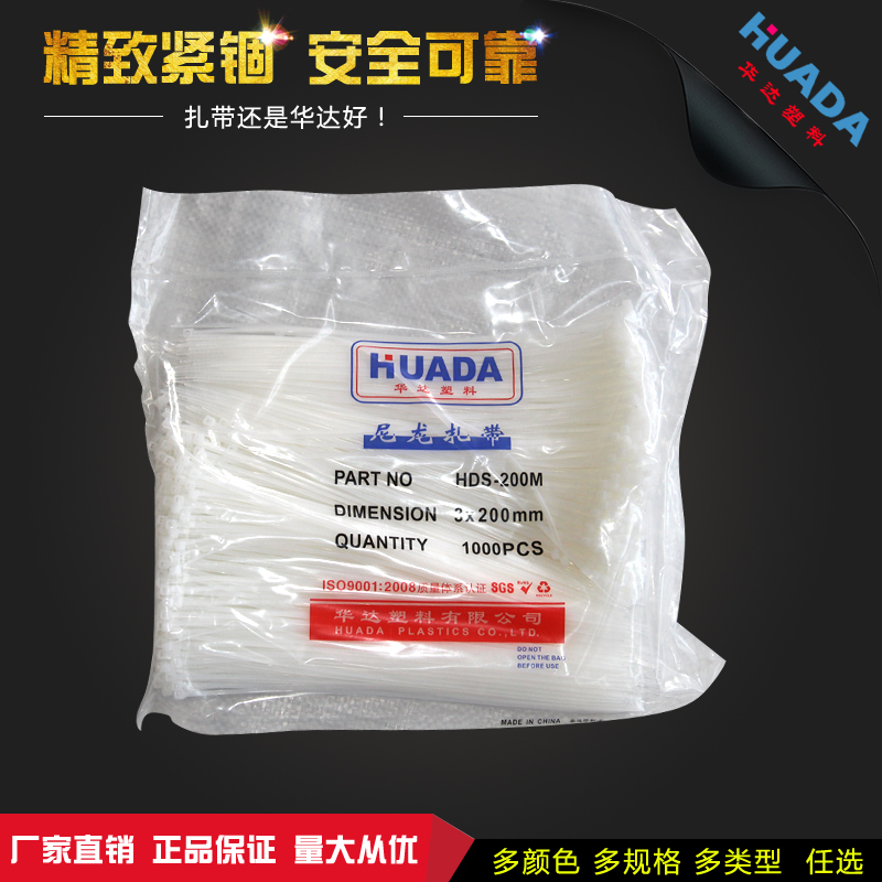 Huada manufacturers supply all kinds of self-locking nylon cable ties, plastic cable ties, color nylon cable ties 3 * 200