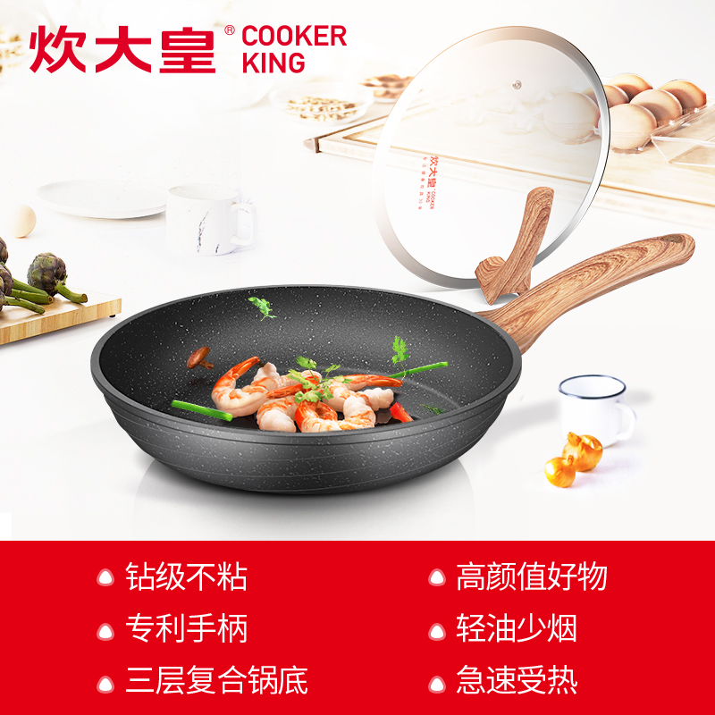 Cook big Imperial wheat rice Stone color non-stick pan frying pan fried fish omelette non-stick smoke-free frying pan 28cm universal