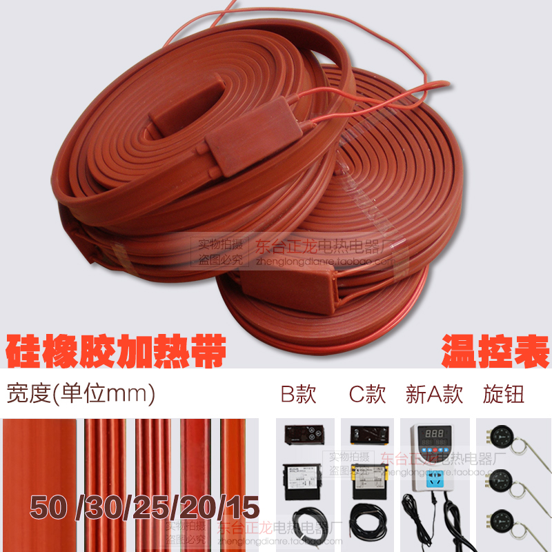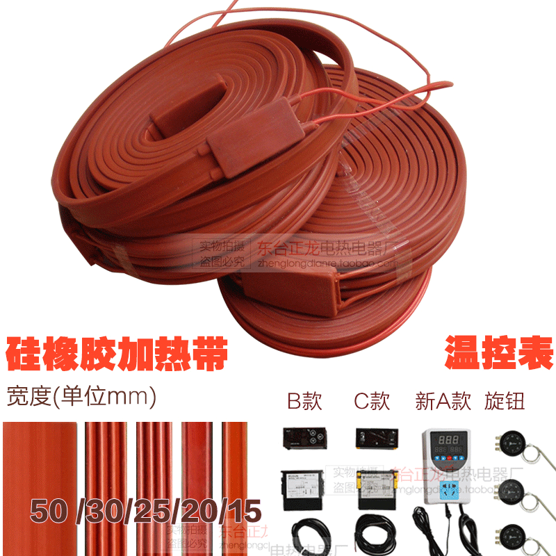 15mm*0.5m 35W15mm*1m 75W15mm*2m 150W15mm*5m 375W15mm*10m 750W20mm*0.5m 35W25mm*0.5m 50W25mm*1m 100W25mm*2m 200W25mm*5m 500W25mm*10m 1KW30mm*0.5m 50W Width 30mm*1m 100W50mm*0.5m per meter 60W width 50mm*1m 120W new A digital display temperature control (GDSX temperature control) B digital display temperature control (ZLCP-02 temperature control) C digital display temperature control (ED330L temperature control) twist temperature control (30-110 degrees) with temperature control box leakage protection plug ordinary plug 20 wide pressure sensitive tape Other specifications customized