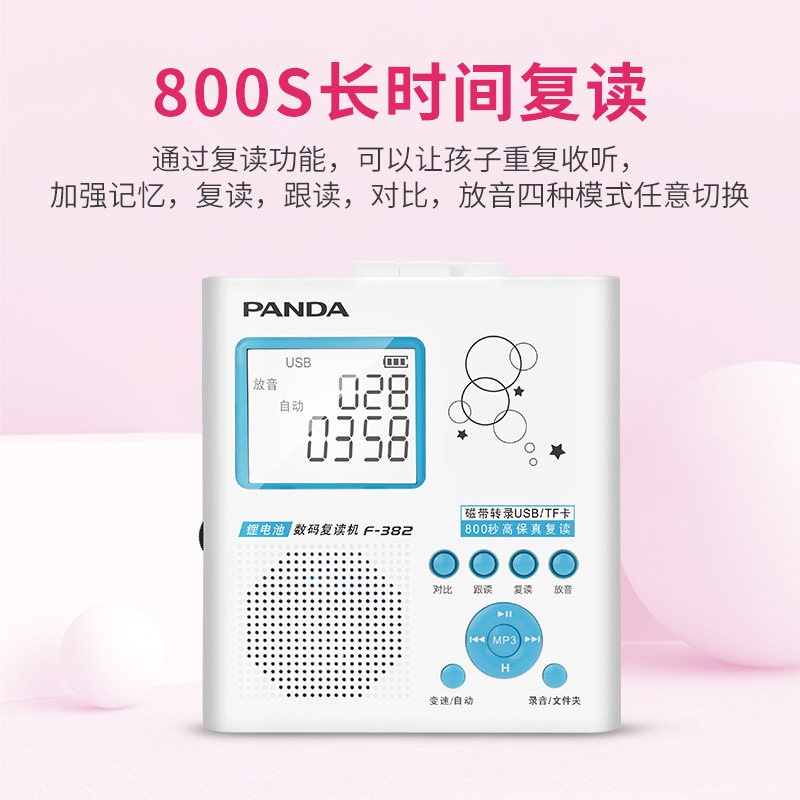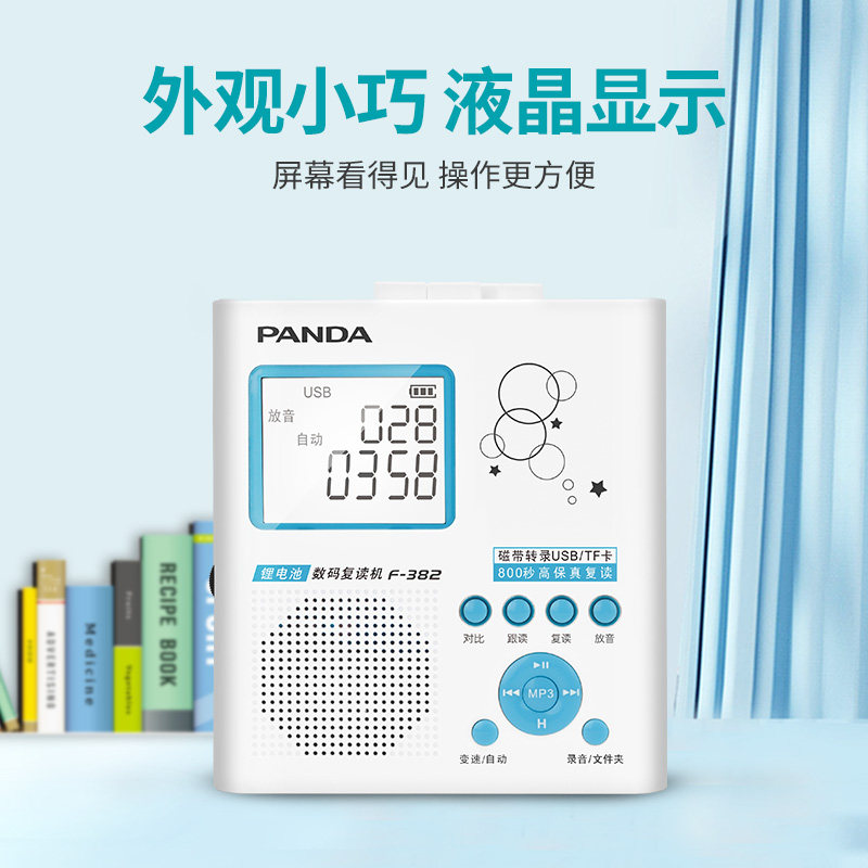 PANDA Panda F-382 large screen tape recorder Student English learning tape recorder U disk MP3 plug-in machine charging model Junior high school students play tapes for children to read