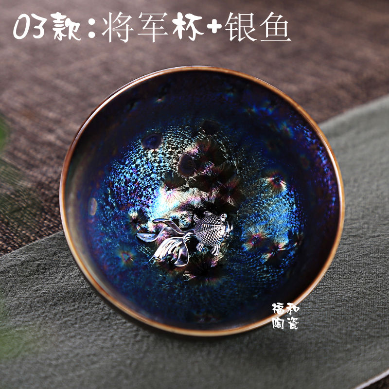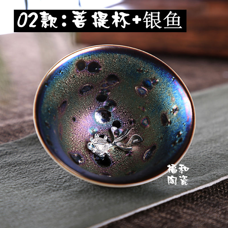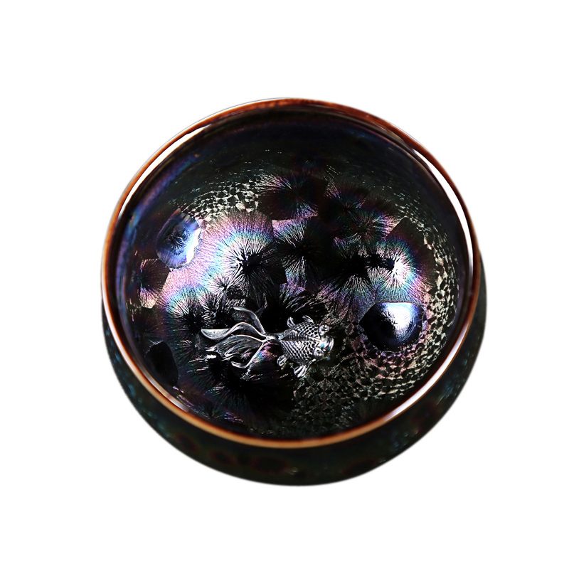 Colorful Peacock Silver Fish Tea Lamp Jianzhan Kiln Changed Tianmu Glaze Oil Drops Handmade Ceramic Kung Fu Tea Bowl