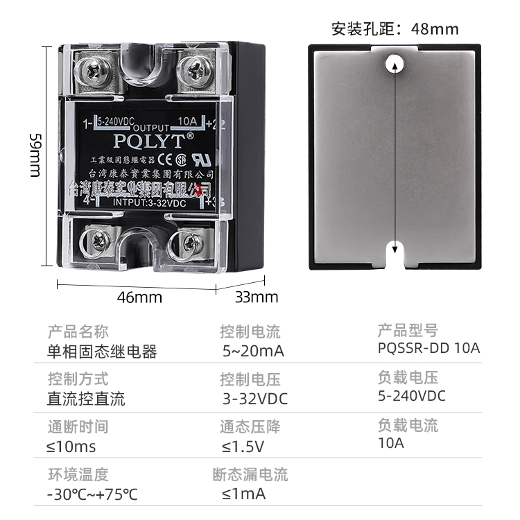 Kangtai Single Phase Solid State Relay 10a DC Controlled DC PQSSR-DD SSR-10DD220V Contactless