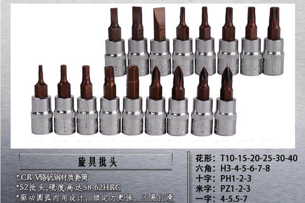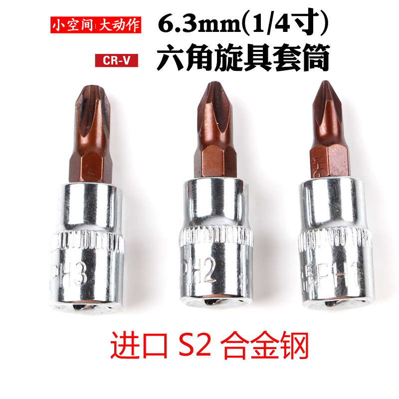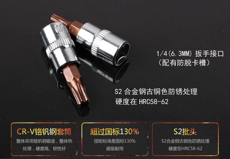 1 4 Chrome Vanadium Steel 6.3mmS2 Batch Hex Socket CR-V Mirror Knurled Bronze Spiral Sleeve Batch Head