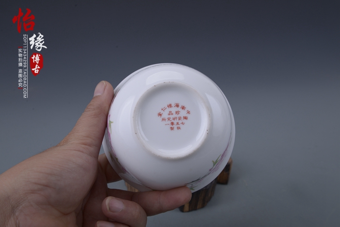Antique new cultural revolution period porcelain home ornaments Mao porcelain Huai Ren Tang 7501 pastel flowers, birds and plum blossom bowls