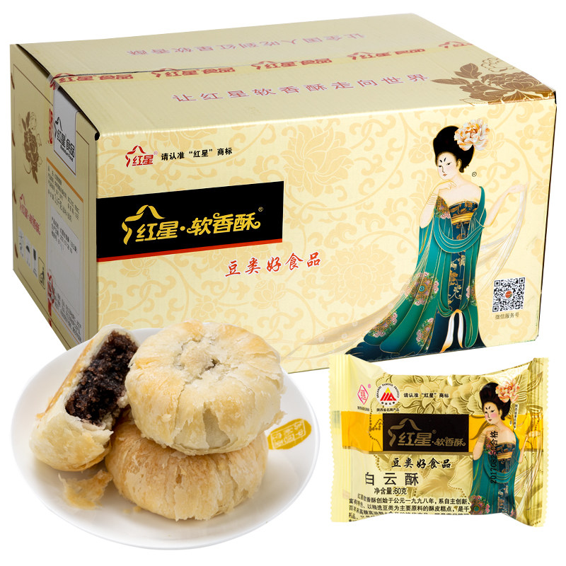 Red Star Soft Crisp 60g Baiyun Crisp FCL Authentic Mid-Autumn Festival Mooncake Gift Bulk Pastry Shaanxi Specialty