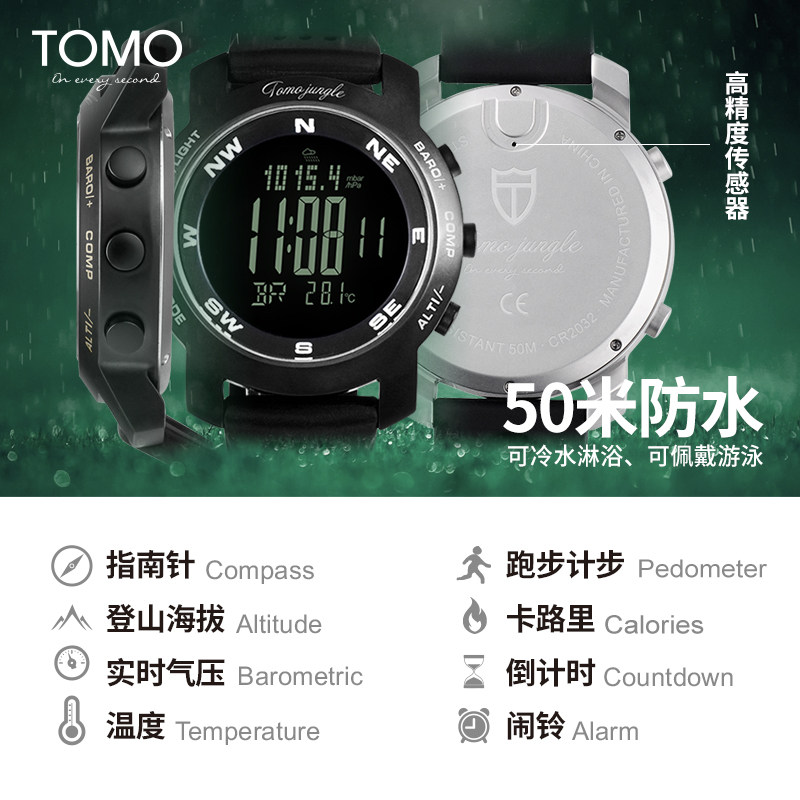 TOMO multifunction outdoor sports watches men climbing table compass altitude temperature air pressure waterproof electronic meters