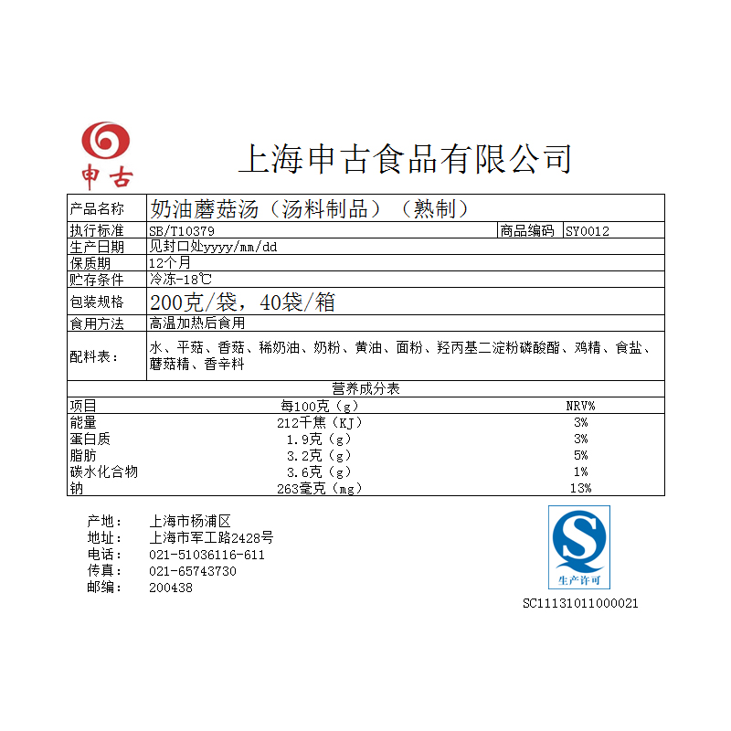 Shengu Cream Mushroom Soup Ladle Fungus Mushroom Soup Convenient Soup Ready-to-use Soup Stock Quick Food Frozen Cuisine Package
