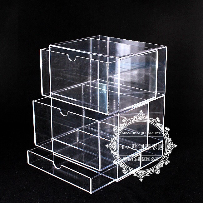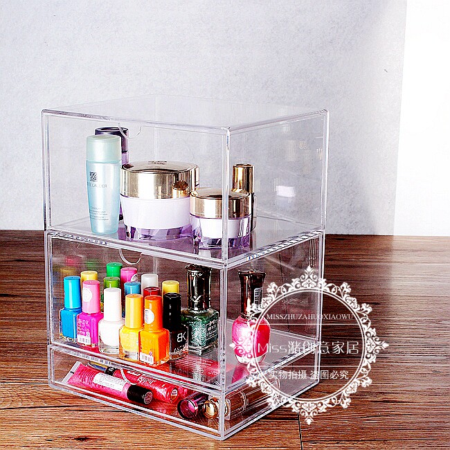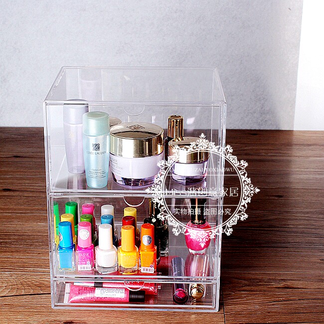 Three layers of transparent skin care products makeup cream nail polish lipstick eyebrow brush eye shadow finishing drawer box storage box