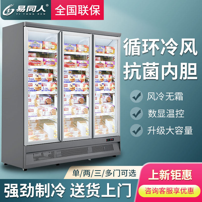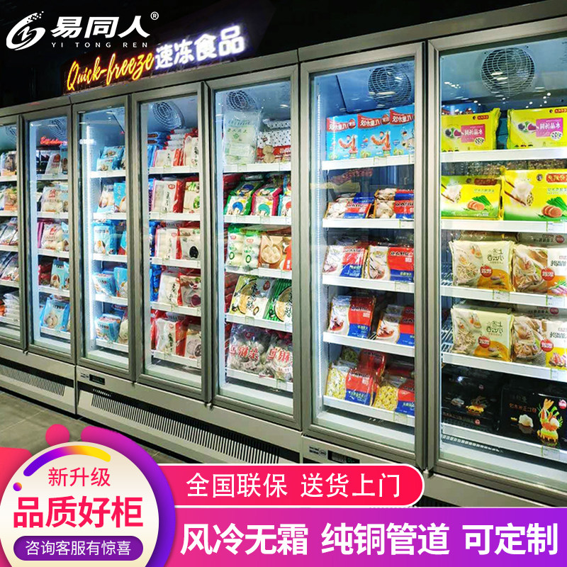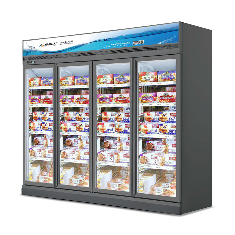 Frozen commercial vertical large display cabinet single and double multi-door supermarket ice cream seafood freezer refrigerated air-cooled food display cabinet