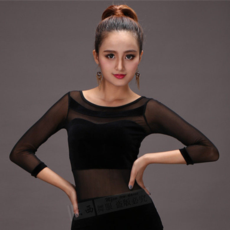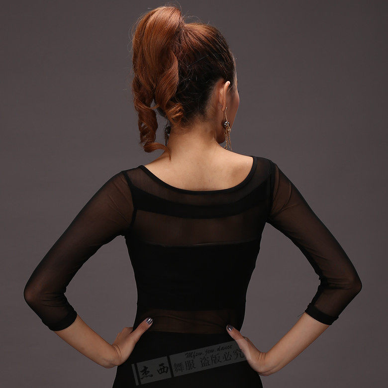 Fire Leaves Flowers Morden Dance Upper Women's Latin Blouses Social Dance Spring Autumn Practice Suits National Standard Adults New 70% Sleeves