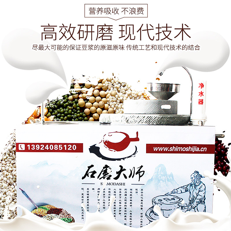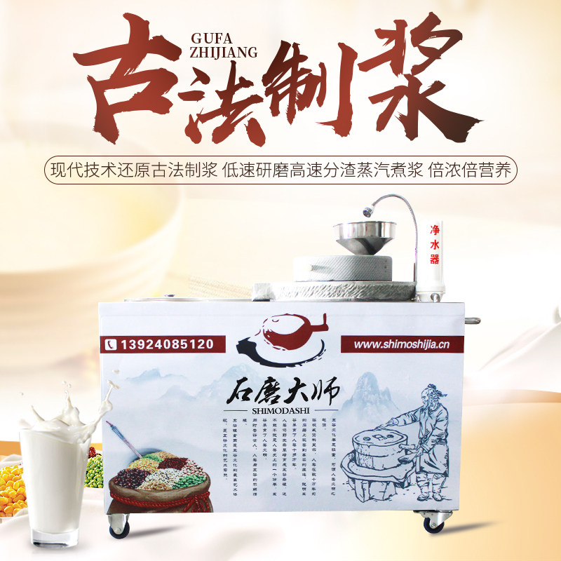 Grinding, slag and pulping integrated fully automatic electric stone grinding soybean milk machine commercial ancestors large-scale pulper double pot