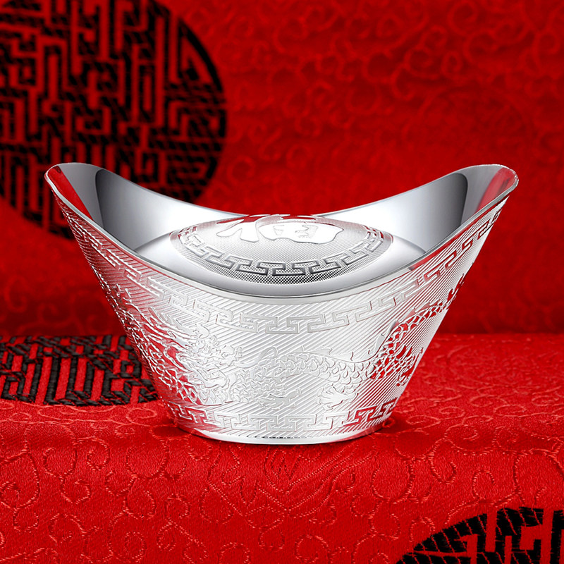 Jiuxi Silver Building S999 foot silver ingot invests silver yuan Baolong Fengfu hollow yuan gadget collection