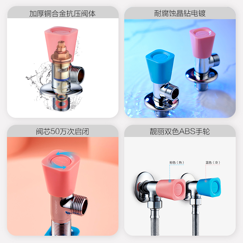 JOMOO Nine pastoral valve home thickened lengthened cold and hot water triangular valve water heater toilet water stop valve 8-word valve