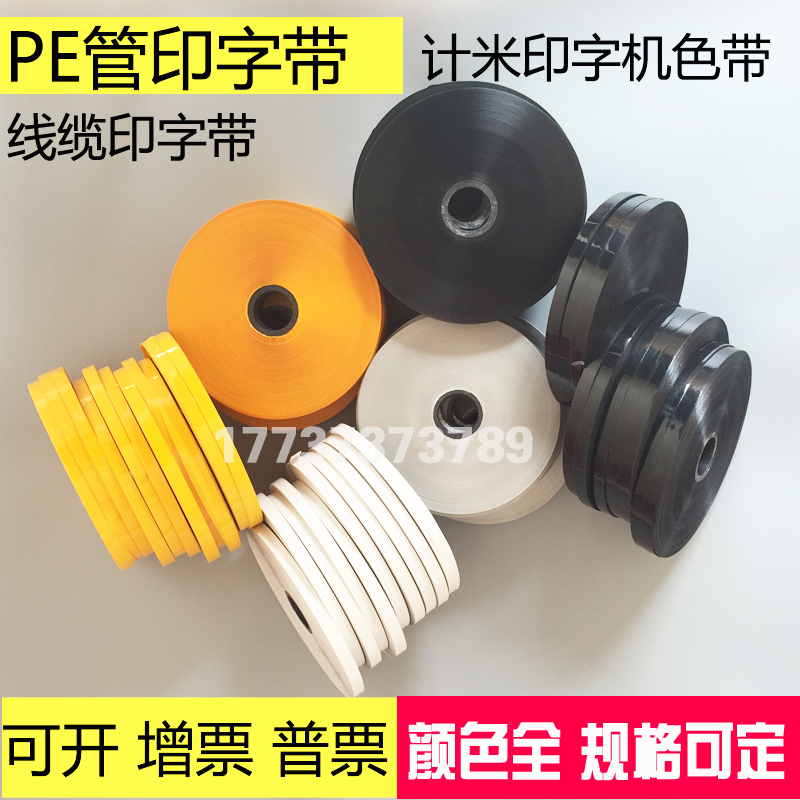 White meter beige typewriter ribbon wire cable PE tube water pipe printed word with yellow black print typewriter