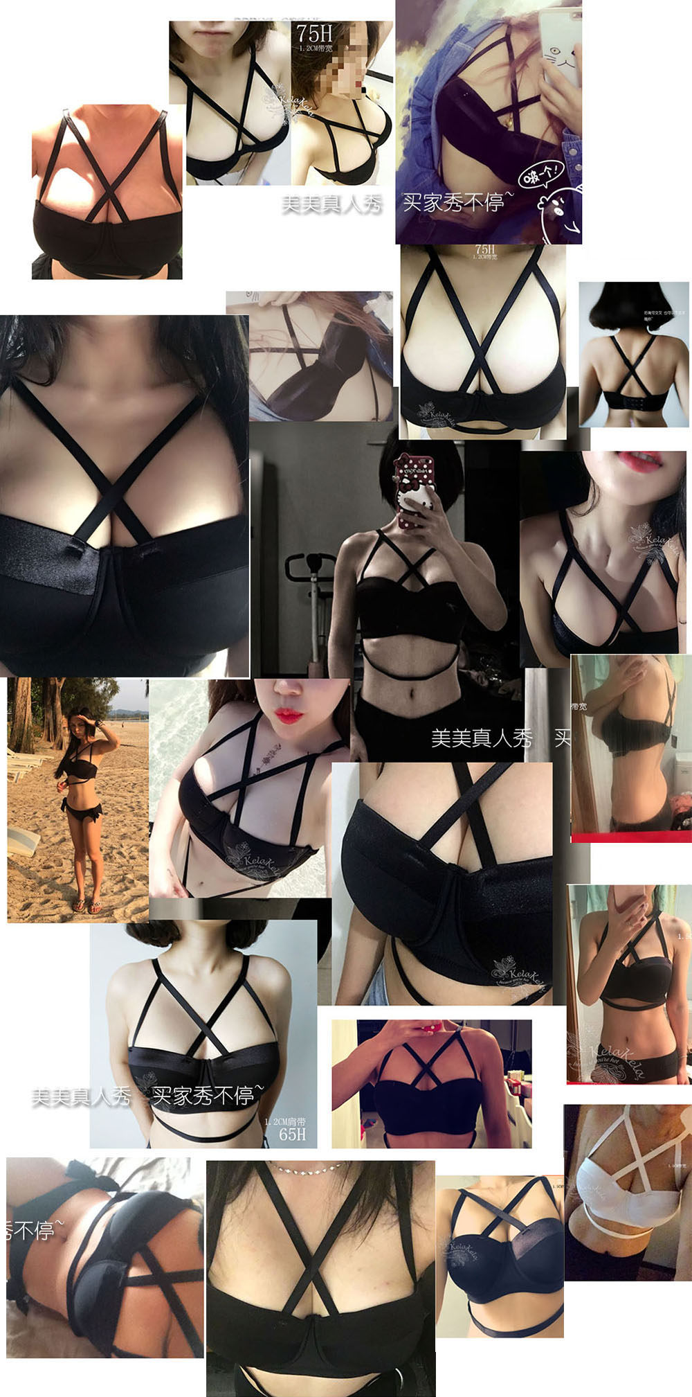 Bundled black sexy cross cute bikini top big chest thin cup a cup G cup F top Cup E cup lift