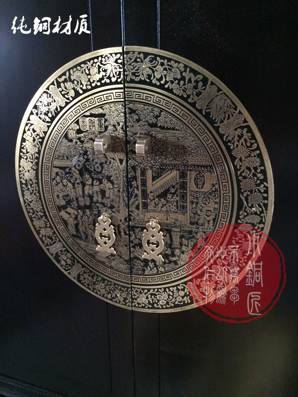 Shoe cabinet door handle Chinese pure copper handle antique round hand - handle - carving hand - hand - hand 24cm