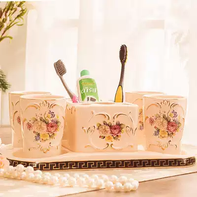 Couple set(with 2 cups) Family set (with 4 cups) Phalaenopsis bathroom six-piece set Phalaenopsis bathroom five-piece set Golden Rose bathroom five-piece set Bathroom tray Bathroom Single cup cup