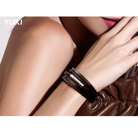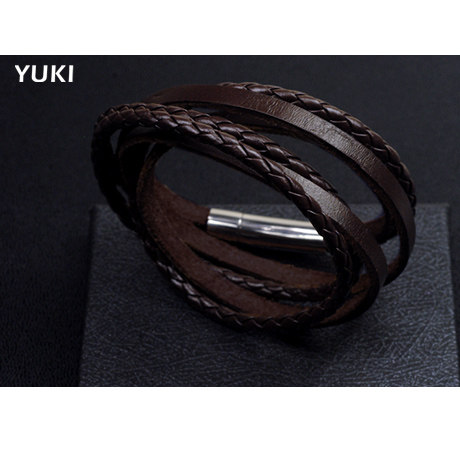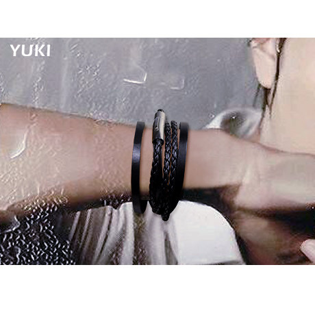 YUKI men's titanium steel cowhide PU leather hand trendy Korean version of hand decoration leather rope multi-layer hand rope girl bracelet