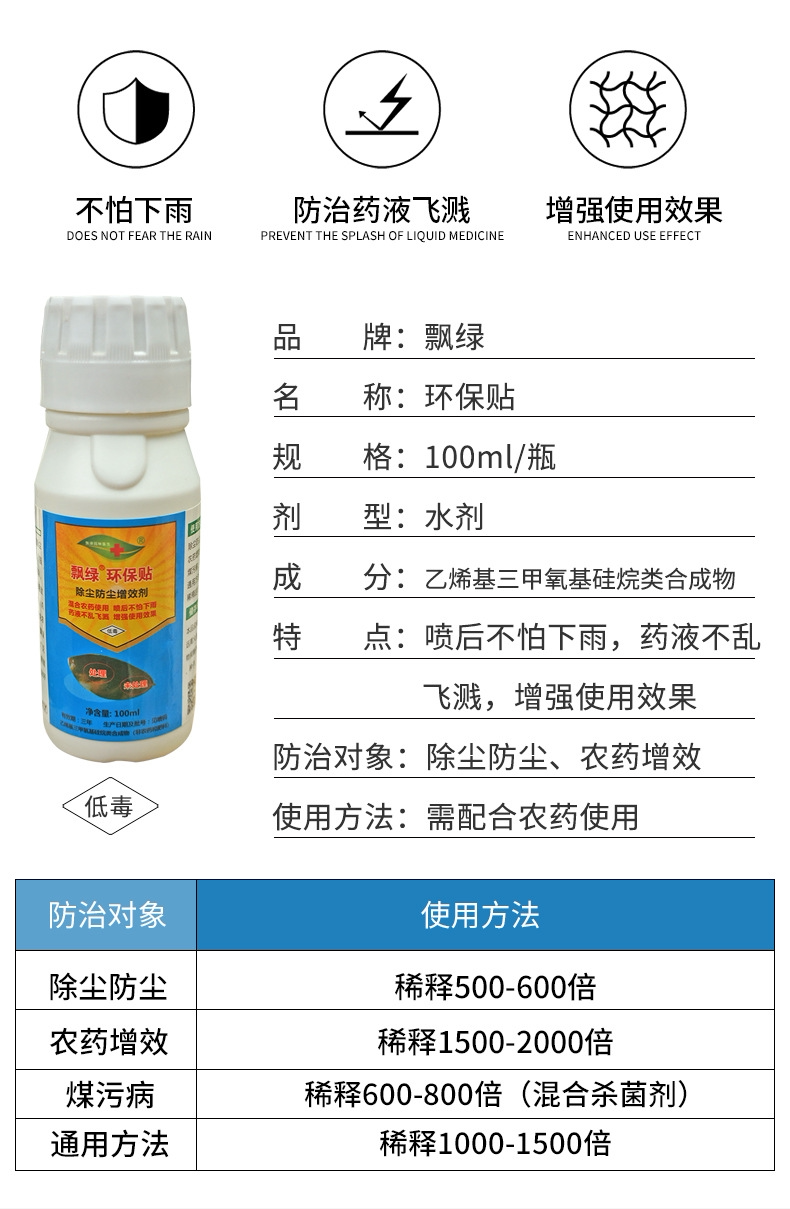 Floating green eco-friendly sticker insecticide Insecticide Fungicide Pesticide Fertilizer Synergist Expansion Powder Penetration Increasing Viscosity
