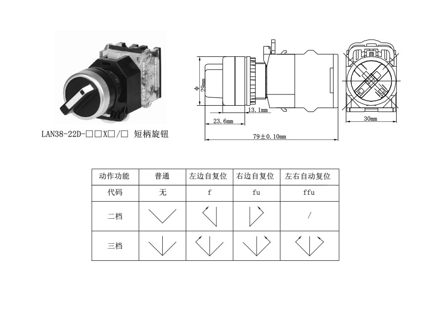 C-Lin Rotary knob Switch LAN38-22D-11X Short handle two-speed knob (LA38-11X)