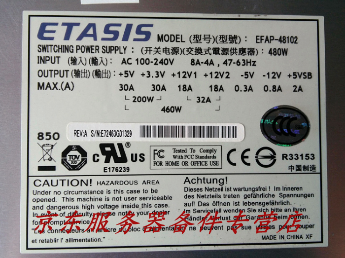 100 million Taixing ETASIS EFAP-48102 server rated 480W with switch 1U server power spot