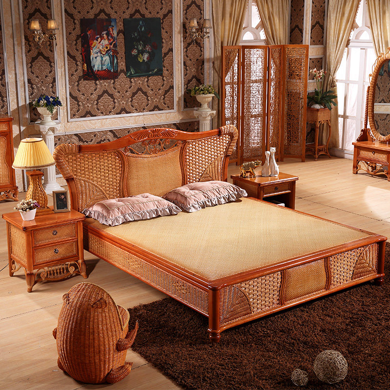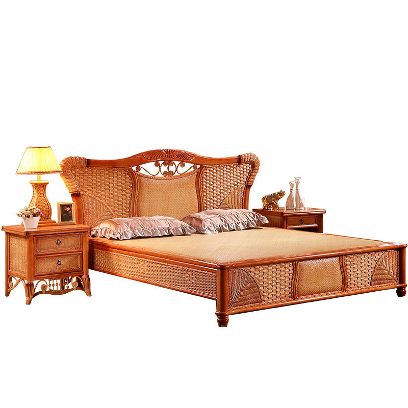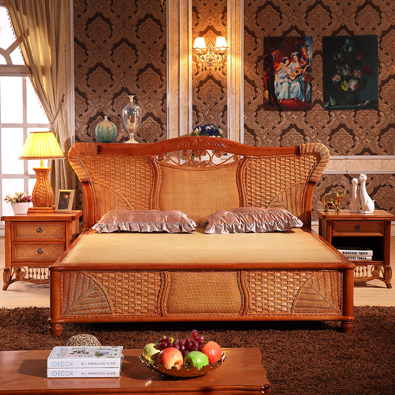Indonesia imported rattan bed Southeast Asian luxury high-end rattan bed rattan art bed rattan mat solid wood bed rattan wood double rattan bed