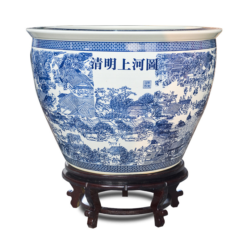 Green flower ceramic fish tank 1 Mitte large water cylinder Porcelain Cylinder Sleeping Lotus Basin Large Lotus Flower Cylinder Bowl Lotus cylinder Turtle Cylinder