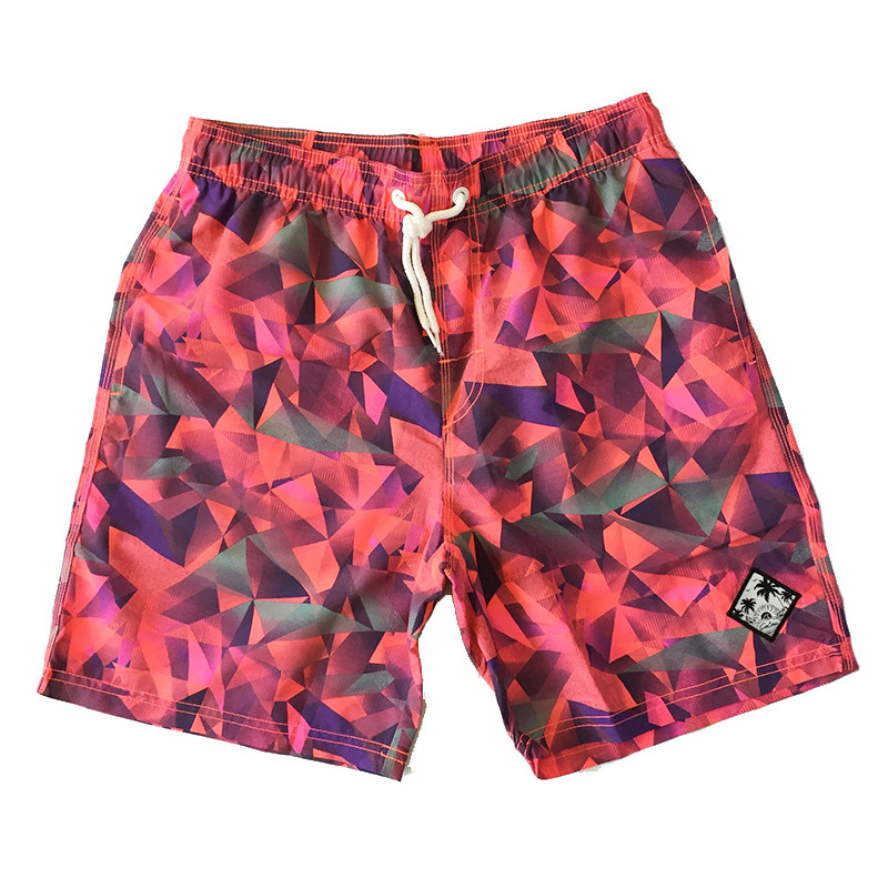 Beach Pants Fluorescent Geometric Printed Men Beach Pants Holiday 50% Surfing Speed Dry Seaside Tourist Shorts Male