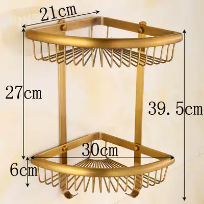 Antique shelf Bathroom powder room double-layer tripod wall-mounted all copper gold mesh basket with hook can be free from punching