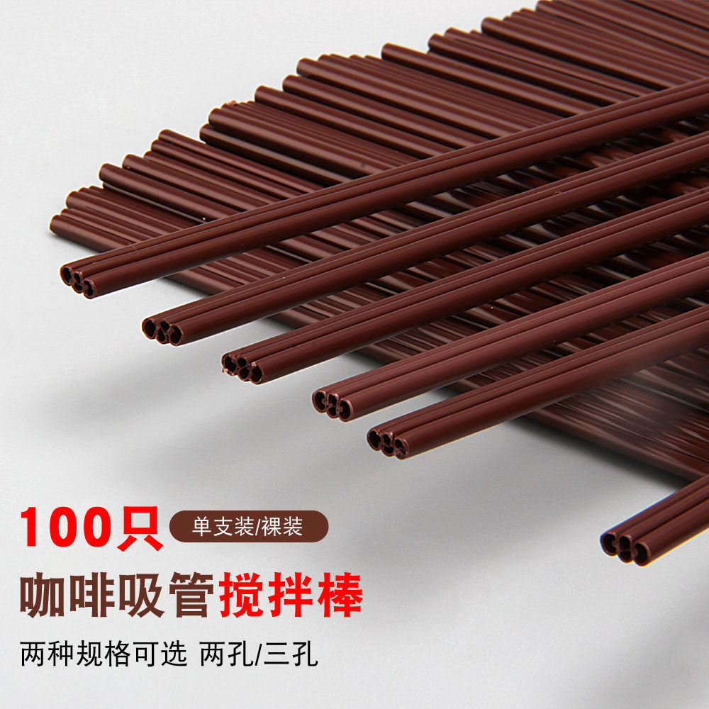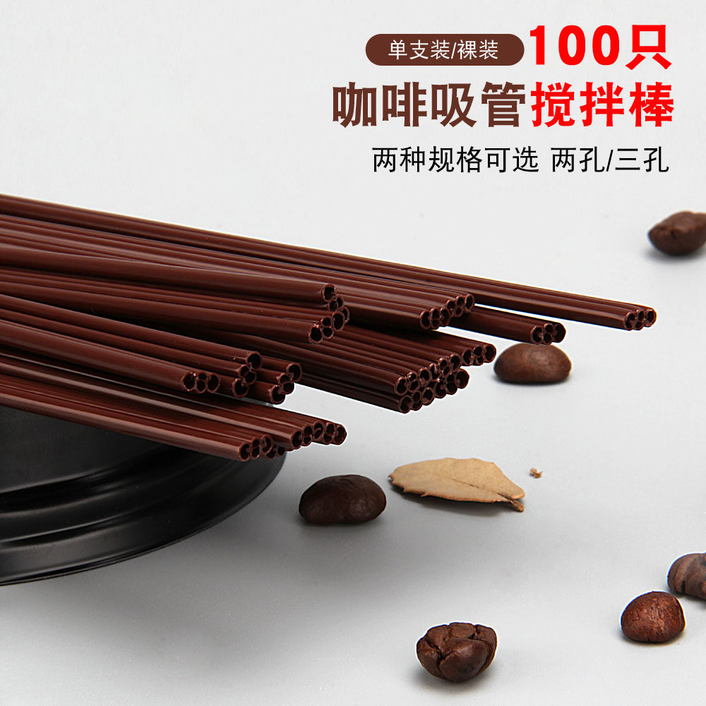 Disposable straw double-hole coffee straw soybean milk tea fine straw paper cup straw juice stirring rod 100