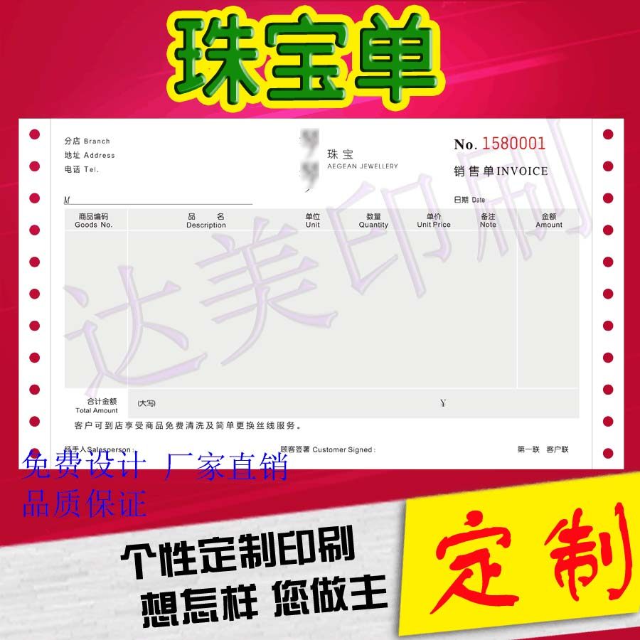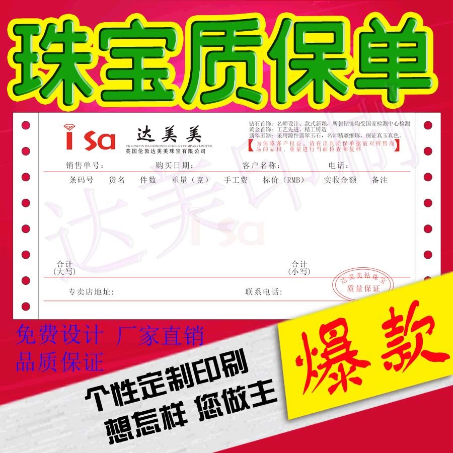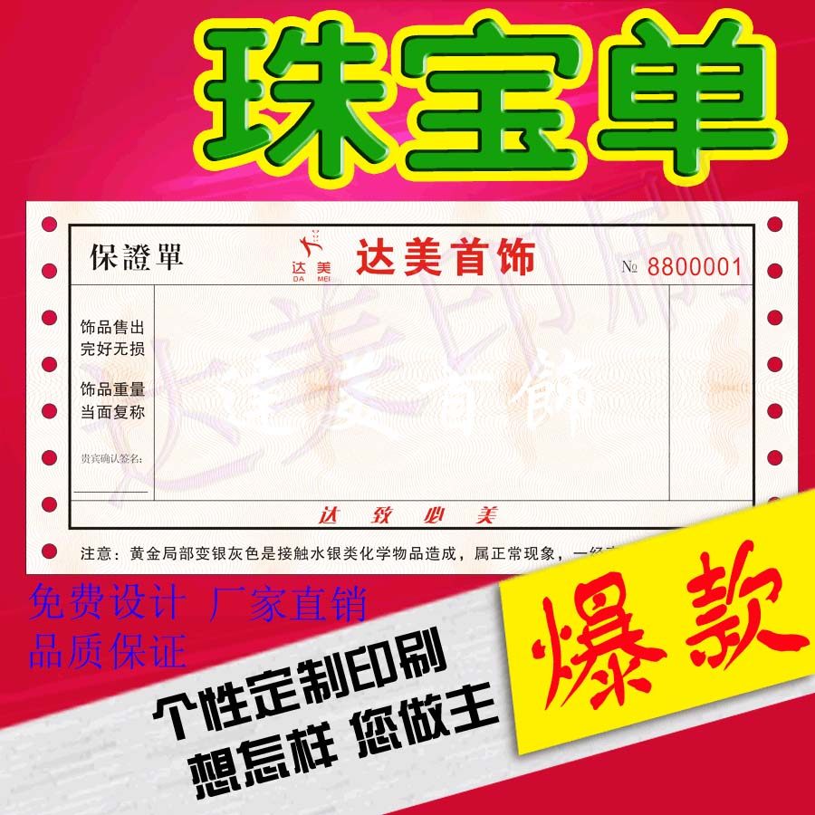 Preferential Jewelry Single Printing Make No Carbon Rewritten Jewelery Warranty Single Printing Set Making Jewelry Elemental Quantity Assurance Slip
