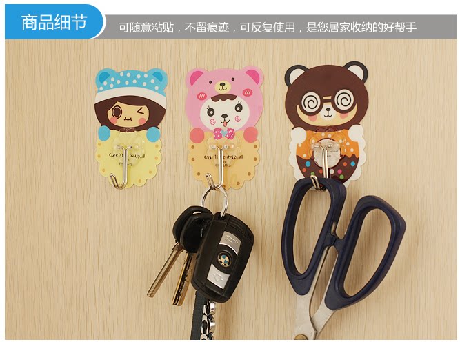 Creative Cartoon Magic Stick Without Mark Hook Kitchen Make-up Room Debris Hook 6 clothes