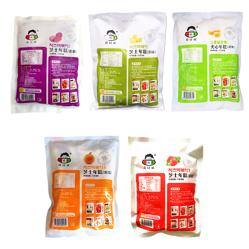 Original cheese (1 bag without sauce) Pumpkin cheese (1 bag without sauce) Purple potato cheese (1 bag without sauce) Strawberry cheese (1 bag without sauce) Yellow yellow cake 1 bag without sauce full tank of original taste