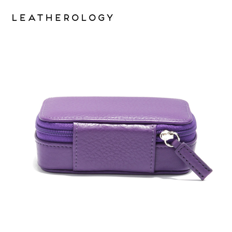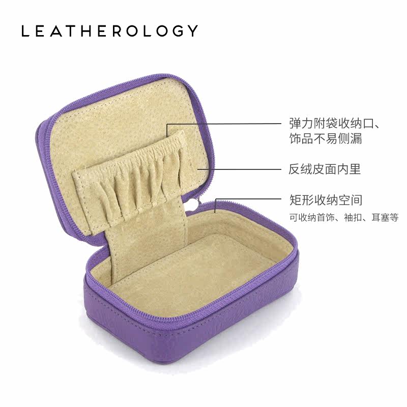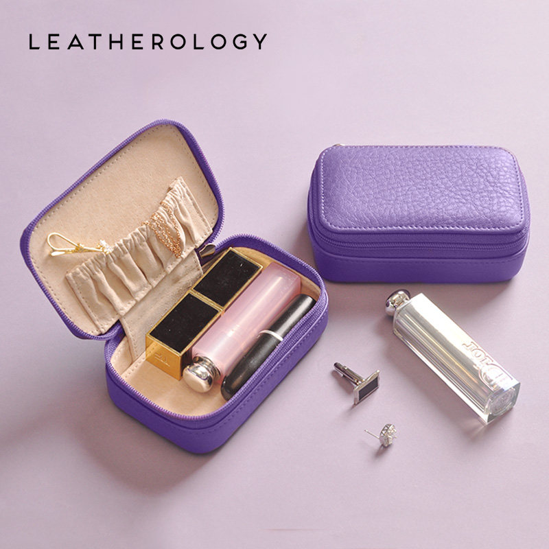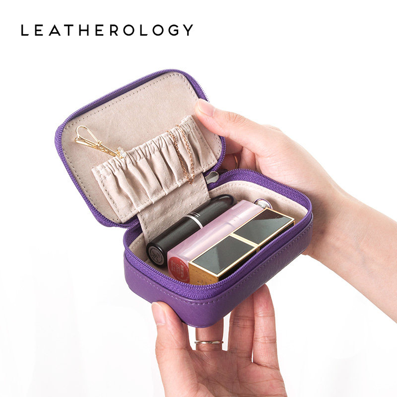 Leatherology Genuine Leather Jewelry Women's Laced Square Box Gift Portable Trumpet Makeup Case Mouth Red Containing Bag