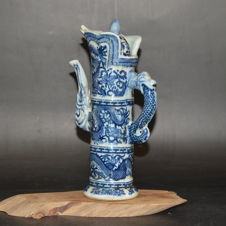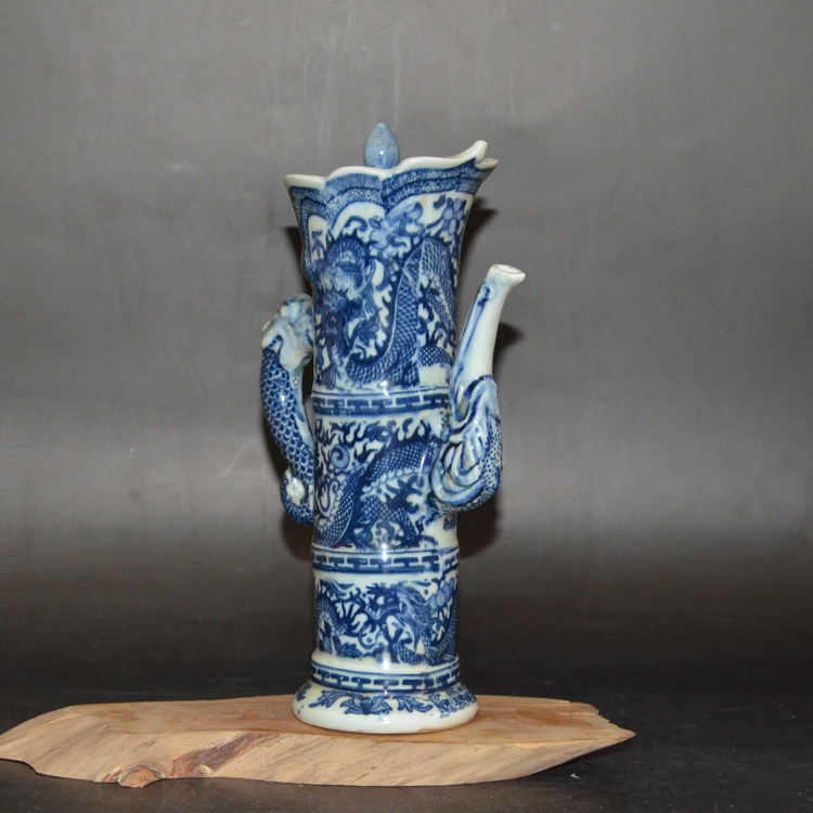 Ancient Play Ancient China Porcelain Collection Jingdezhen Factory Goods Imitation Ancient Ceramic Semi-Handmade Green Flower Pan Dragon Wine Pot Swing Piece Collection