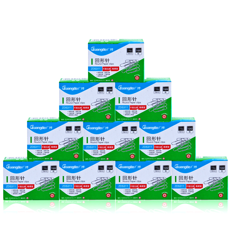 (100 pieces, 10 boxes) Guangbo Metal Anti-rust Paper Clips Office Supplies Paper Clips Paper Clips Paper Clips Paper Pins Paper Pins Paper Binding Stationery Nickel-plated Thickened Stationery Pins Office Supplies Wholesale