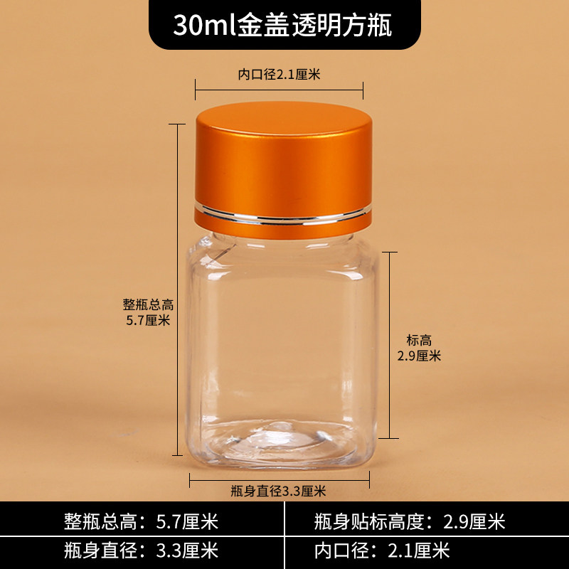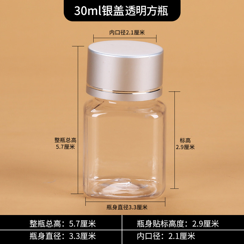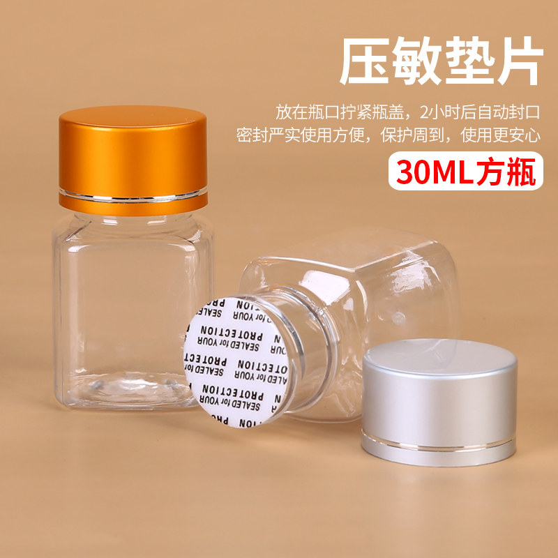 Plastic bottle 30g Ml transparent plastic bottle medicine bottle packaging bottle small sample empty bottle metal cap square bottle