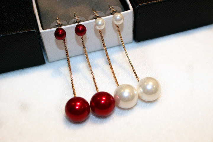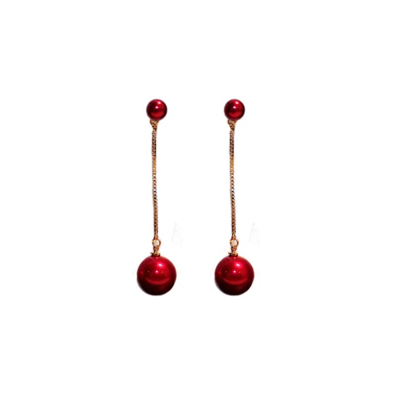 Korean pearl long version of the stream Suear pendant Sexy Red Temperamental Earrings Minima Sweet EAR PIN FASHION