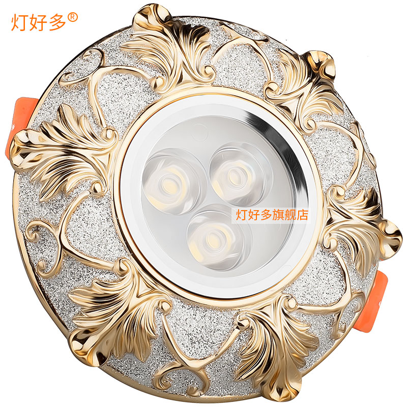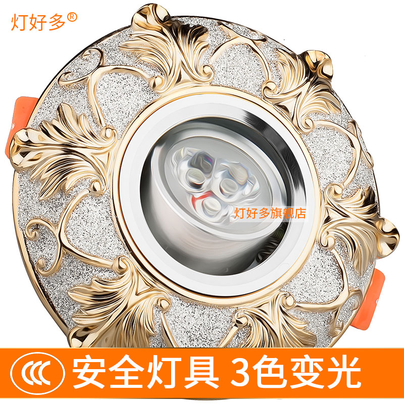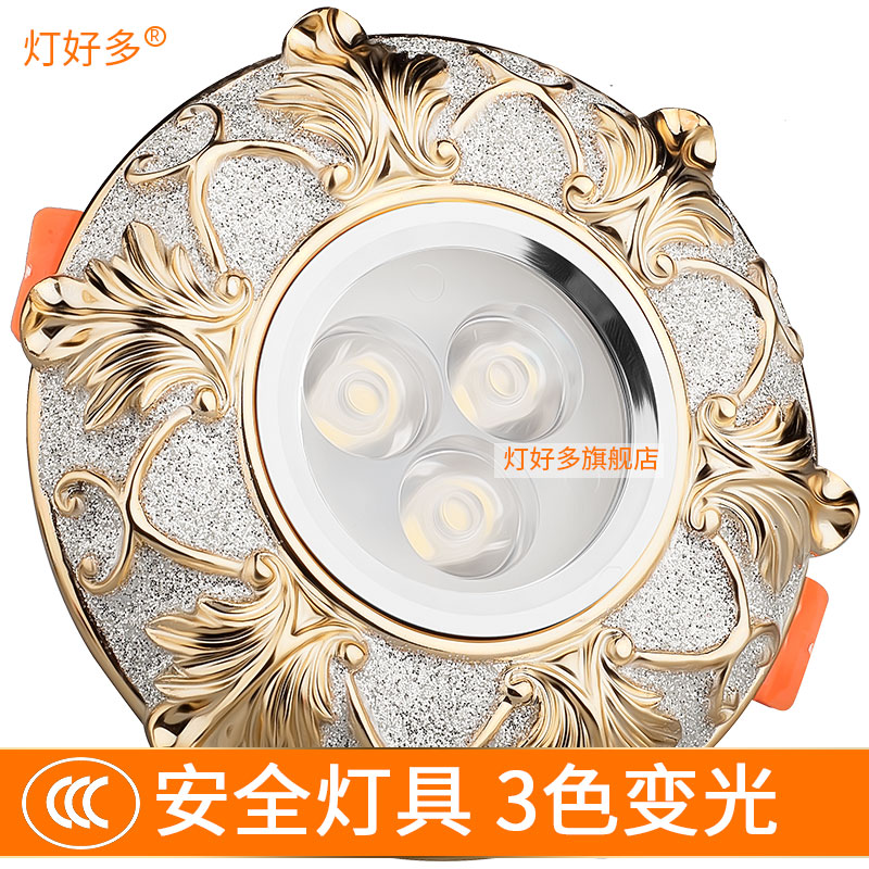 Three-color dimming European-style champagne gold home embedded living room ceiling LED spotlight downlight 7 5 hole ceiling lamp