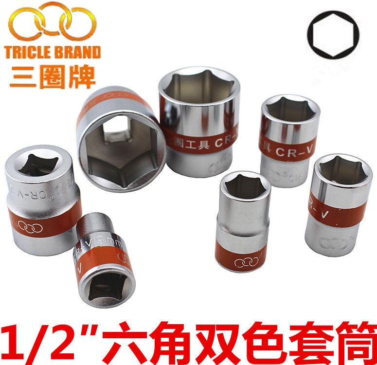 Shanghai Hui One Three-Lap Tool 1 2 ″ two-color short sleeve head hexagonal sleeve seed 8-32mm Single Price