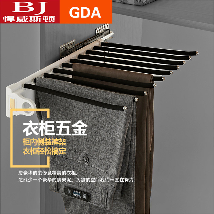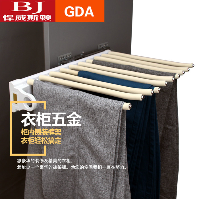 Wardrobe hardware cabinet inner trouser frame side push-pull cushioning damping West pants rack non-slip cloakroom hanging pants hardware