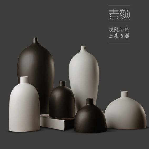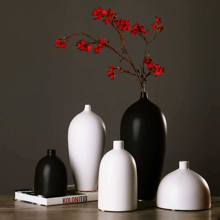 American Day style Zen Chinese style Home Accessories Handmade Flower Inserts Decoration Pendulum Black white ceramic vase retro bottle