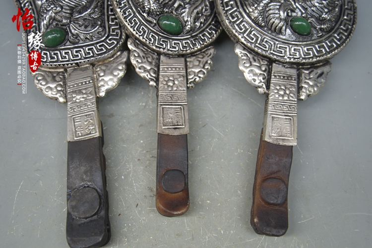 Ancient Playing Antique Miscellaneous Collections Pure Handmade White Brass Bags Wood Inlaid Jewel Dragon Pinewood Bronze Mirror Folk Antique Old Goods-Taobao