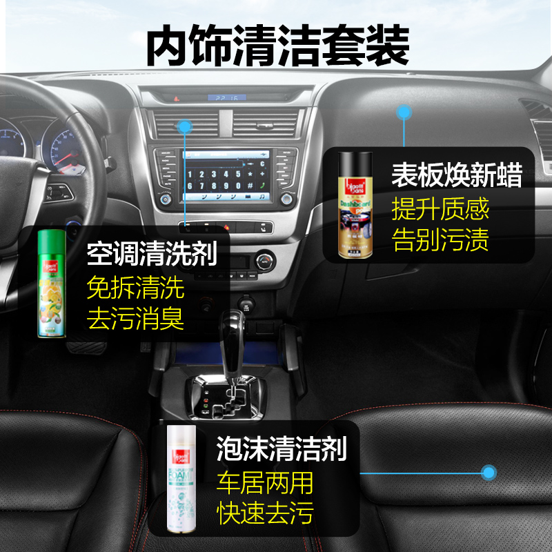 External cleaning set (water tank cleaning agent asphalt cleaning agent tire foam cleaning agent) interior cleaning set (meter plate wax multifunction foam cleaner air conditioning detergent) both inside and outside