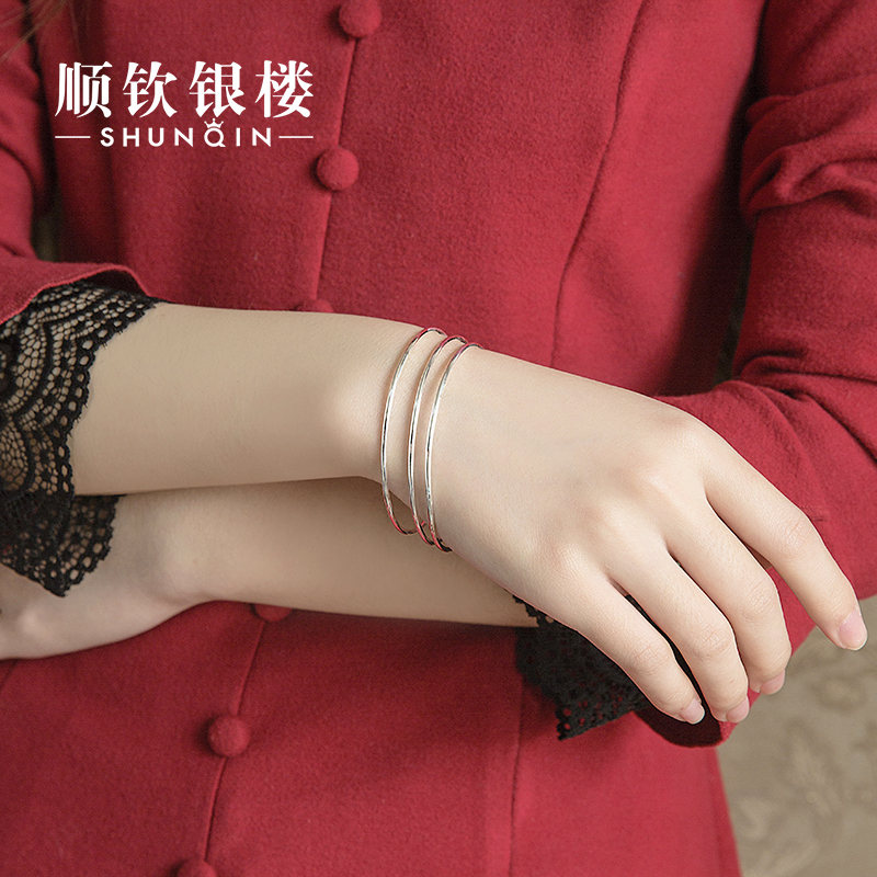 Sansheng III S999 foot silver bracelet women closed-mouth fine aperture jewelry Sen tie pure silver bracelet solid silver jewelry