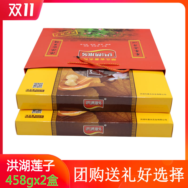 Honghu Lotus Seed Gift Box Clothing (458gX2 case) Honghu Shuishui Red Lotus Lotus Seed without Core Dry Cargo Year Cargo Hong Lagoon
