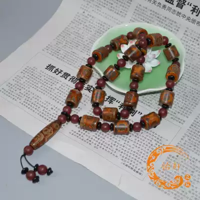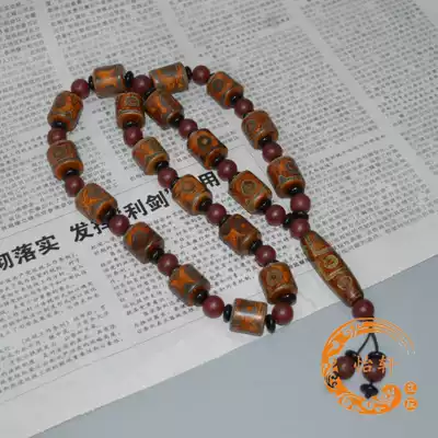 Natural Tibet Laozhu original stone hand necklace sweater refining Sky Eye bottle three eyes nine eyes celestial pearl cinnabar genuine