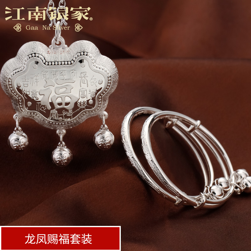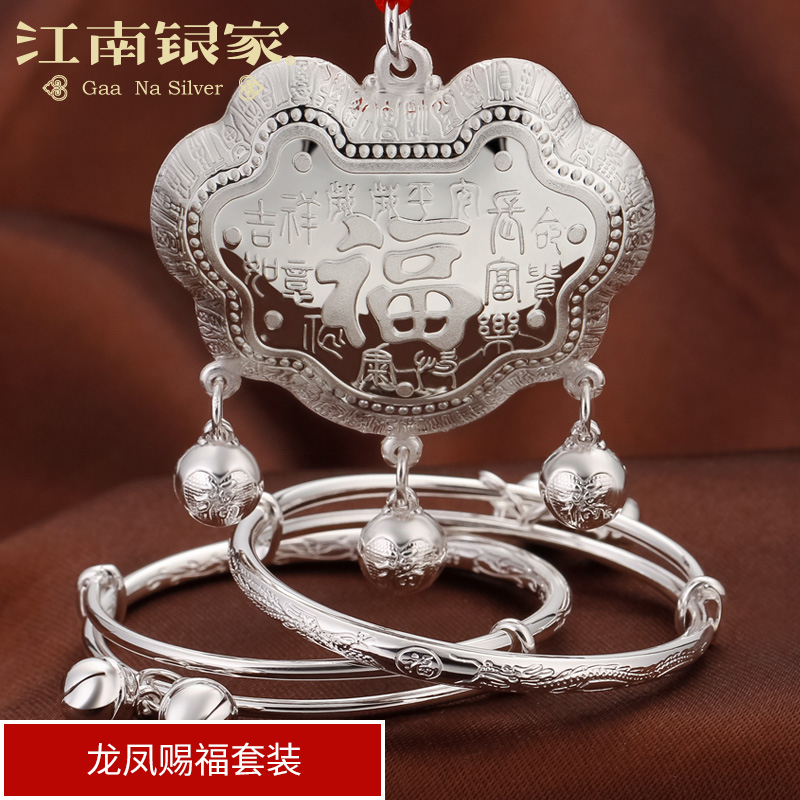 Dragon year baby foot silver bracelet 999 pure silver long life lock Longfeng silver decorated with full moon suit newborn New Year gift box-Taobao